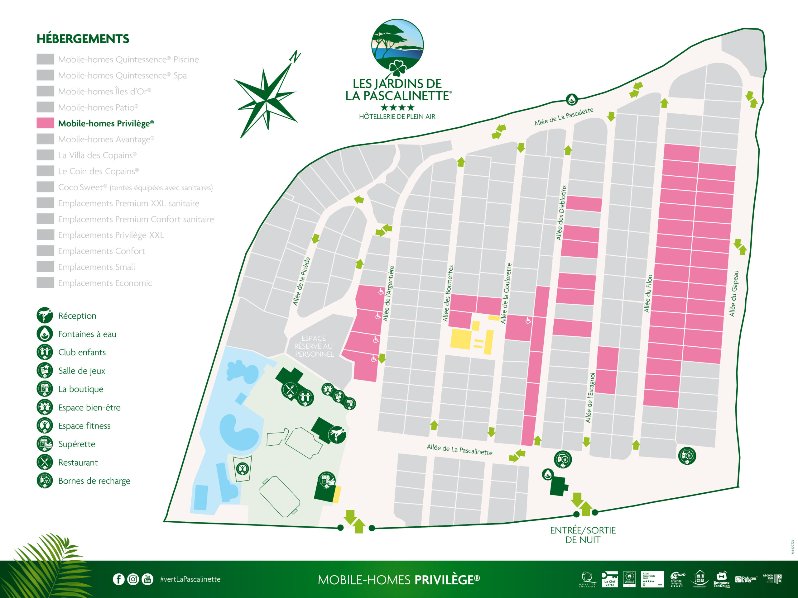 op een toegankelijke en groene 4-sterren camping. Geniet van de rust en ruimte, het waterpark*** en de uitzonderlijke beplanting op het park… Luxe in alle eenvoud!